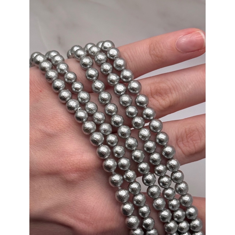 В наличии Код товара: 20046 Жемчуг Майорка, искусственный, серебристый, фактурный, шарик гладкий, 7,8 мм, длина нити 39 см