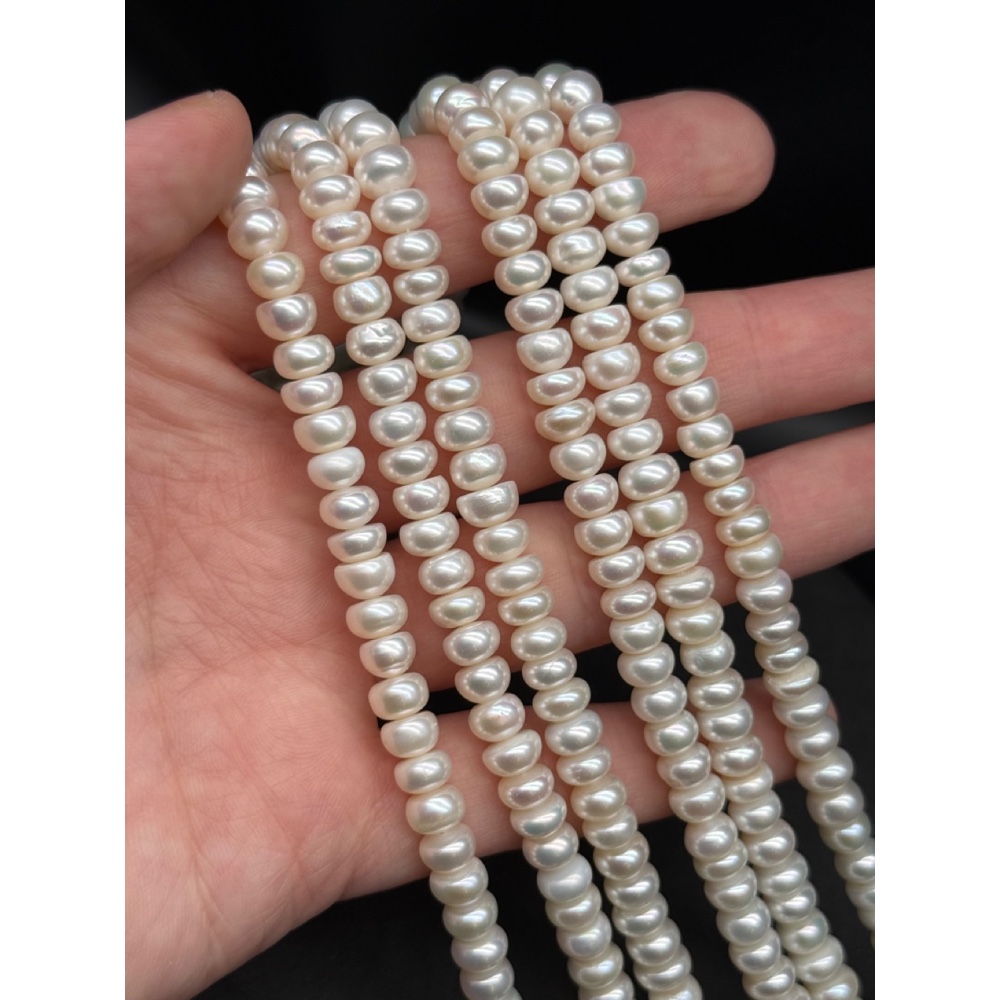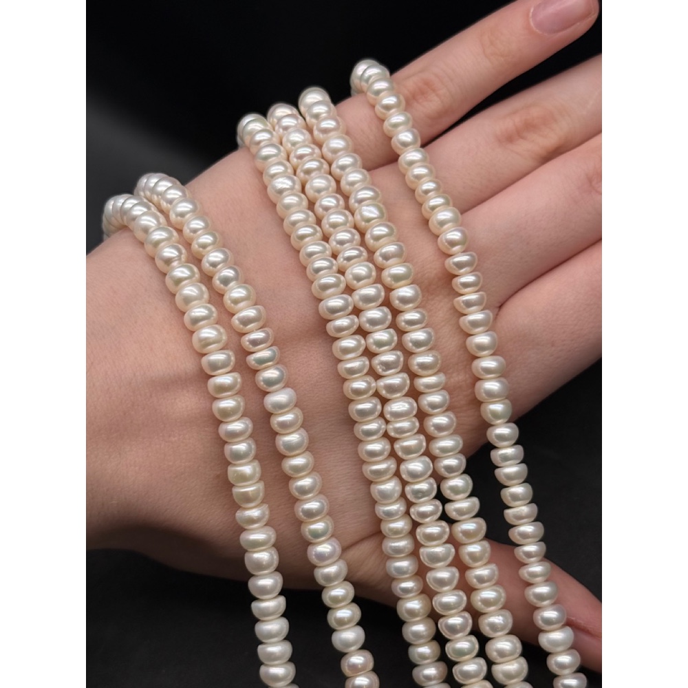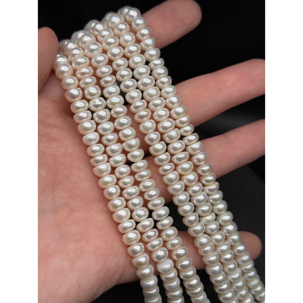 Теги: Каменные бусины, Жемчуг, белый, 4А, рондель, размер 7х5 мм, длина нити 37 см, 15943, Жемчуг
