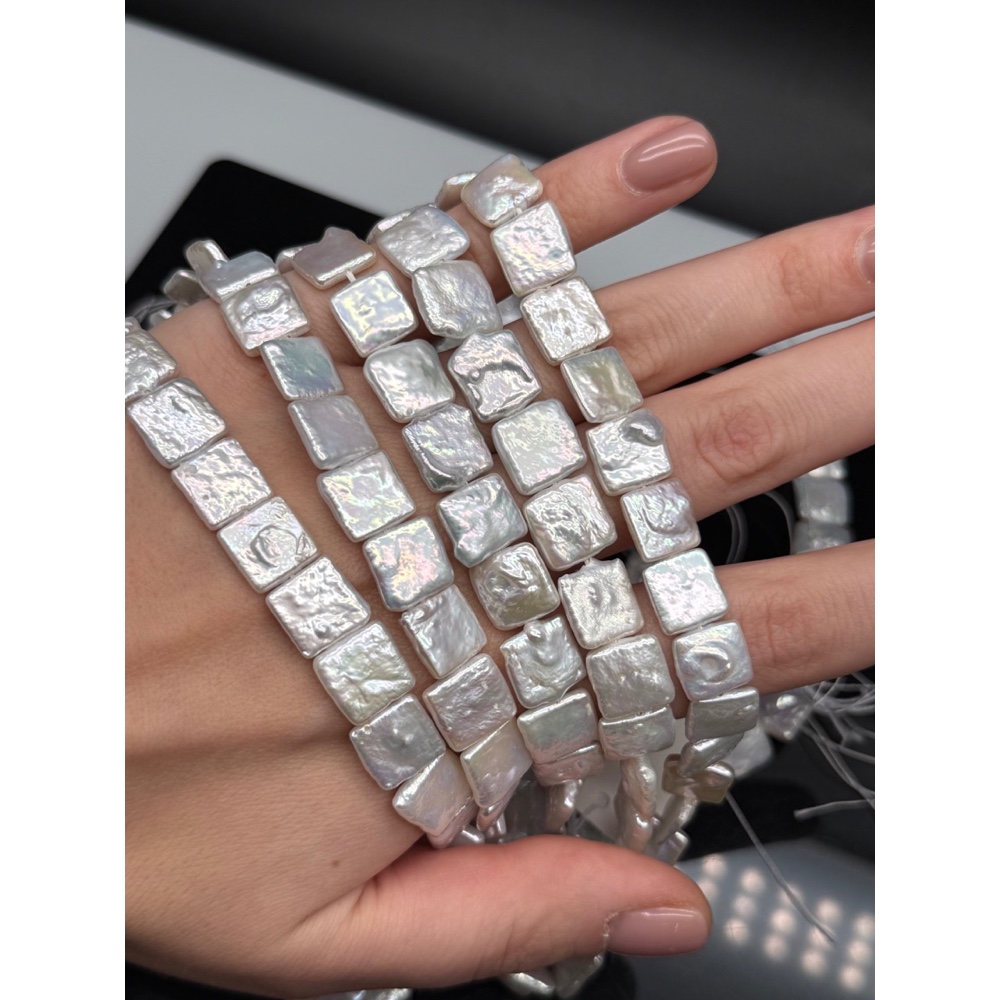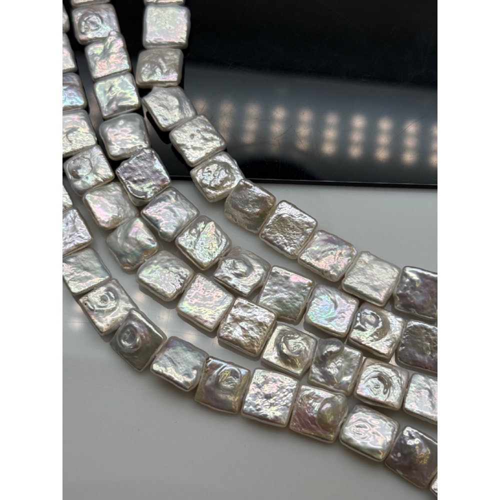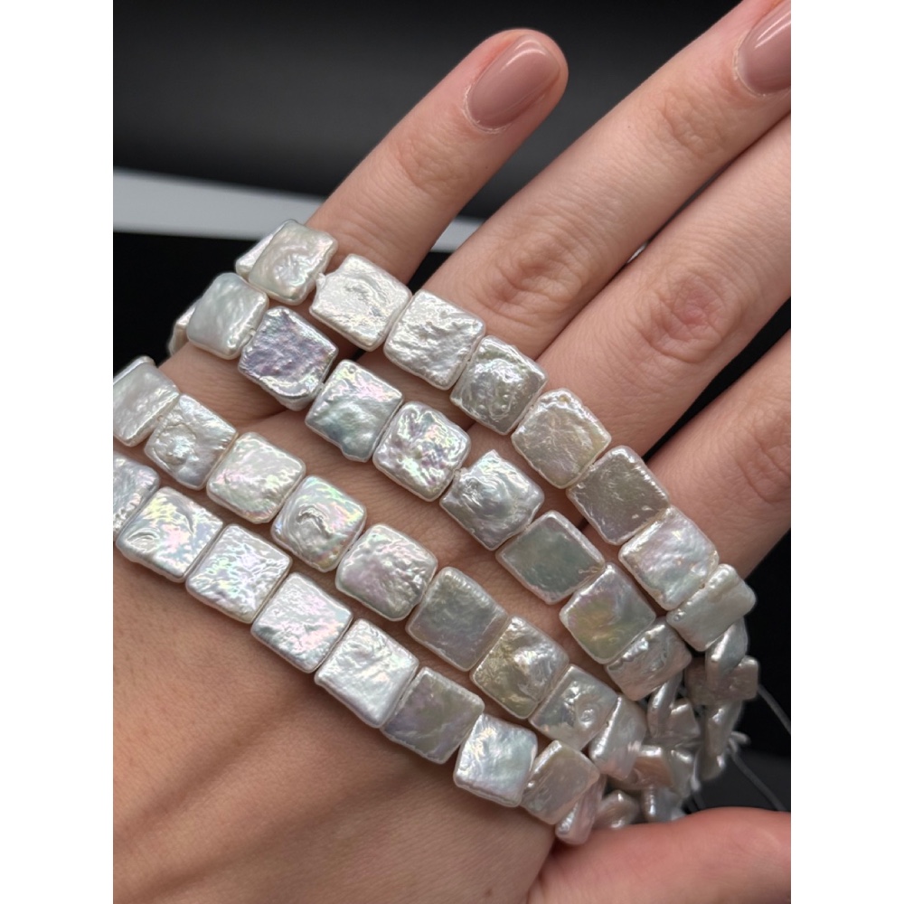 Каменные бусины, Жемчуг, белый, барочный, квадрат плоский, ~11 мм, длина нити 38 см