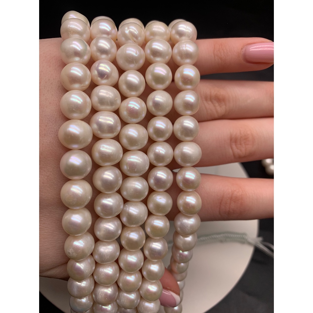 Каменные бусины, Жемчуг, белый, люкс, 11-12 мм, длина нити 38 см