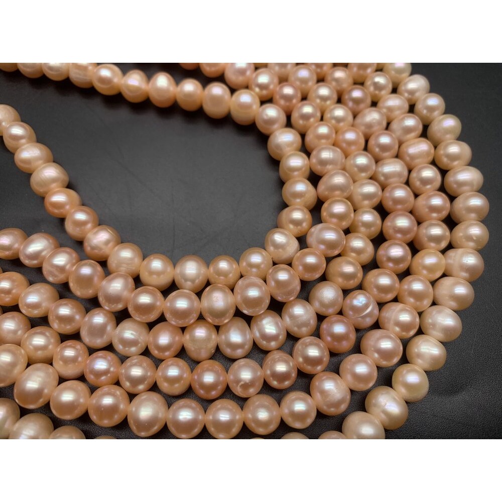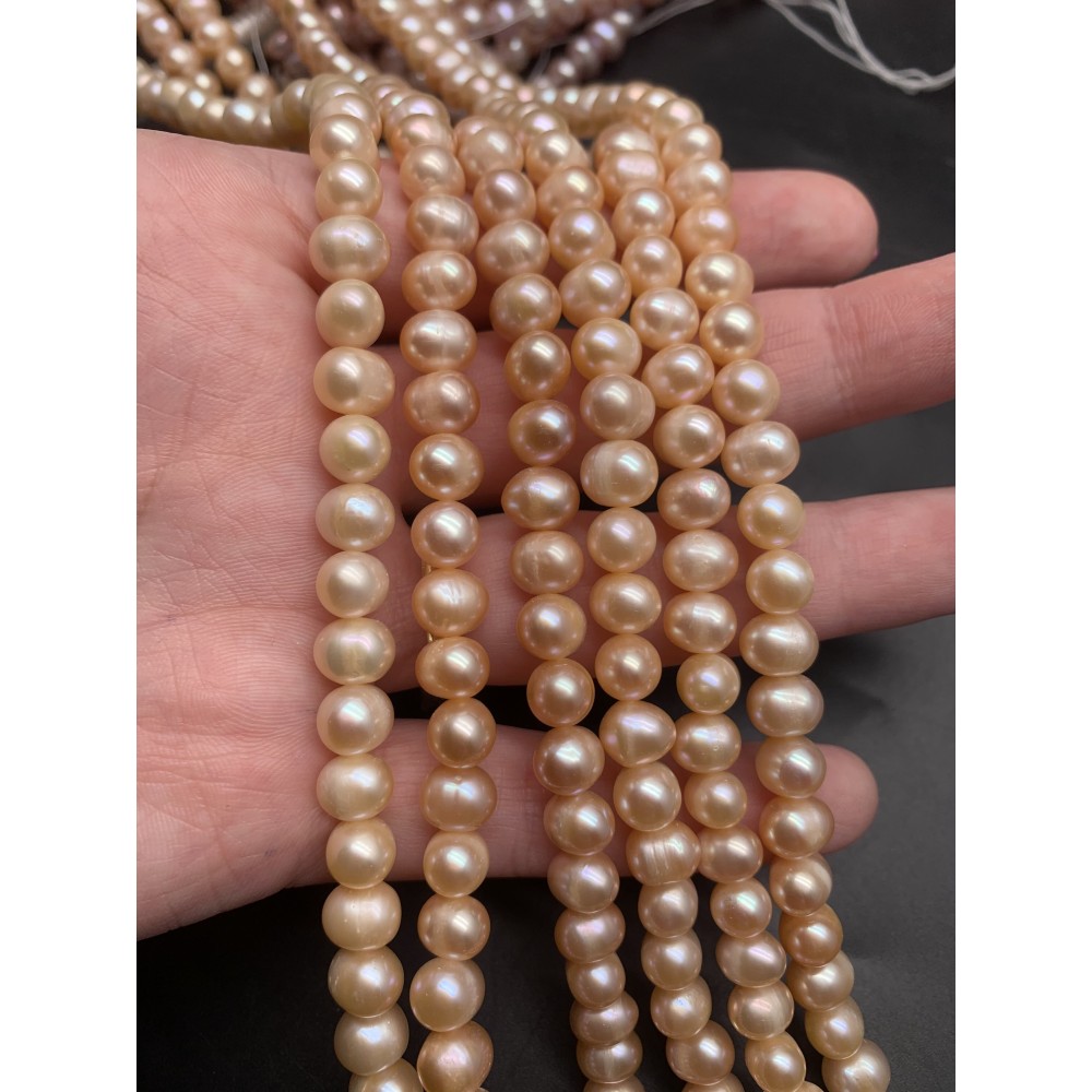 • Каменные бусины, Жемчуг, бежевый, 7 мм, длина нити 38-39 см