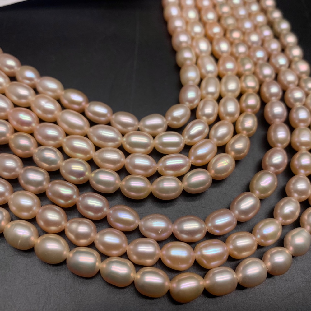 Каменные бусины, Жемчуг, бежевый, рис, 6-7 мм, длина нити 38-39 см