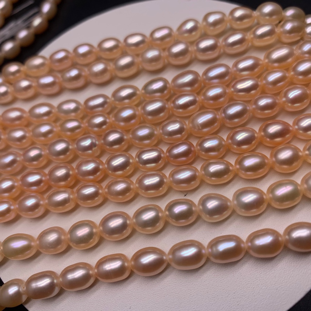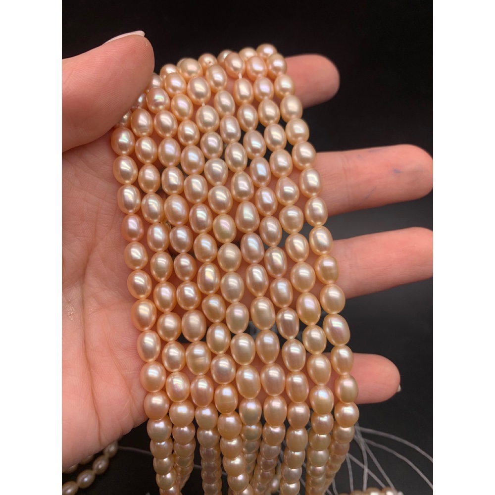 Каменные бусины, Жемчуг, бежевый, рис, 6 мм, длина нити 37-38 см