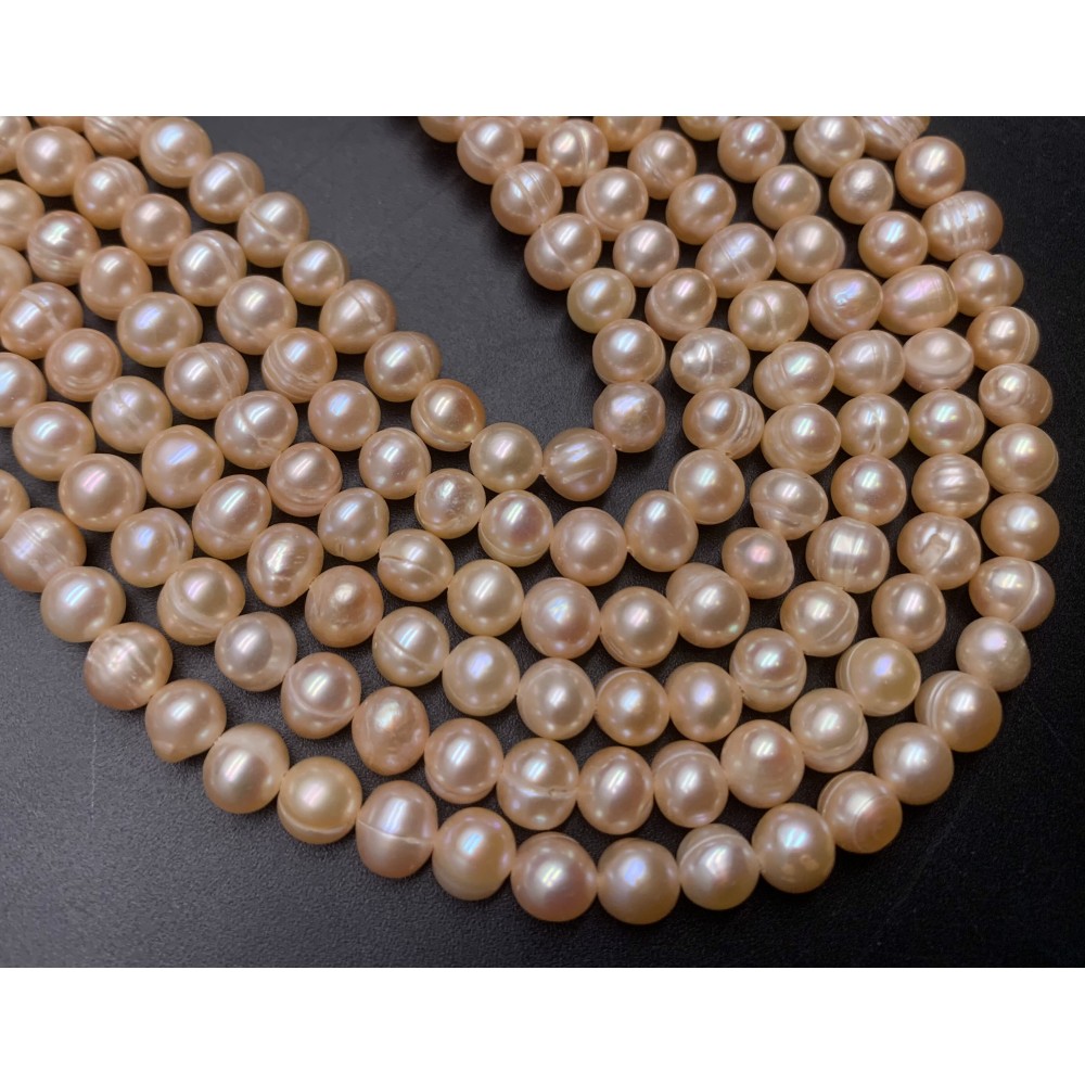 Каменные бусины, Жемчуг, бежевый, шарик, 6 мм, длина нити 33-34 см