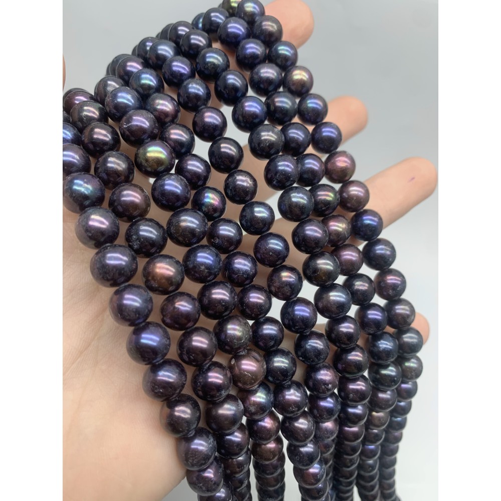Каменные бусины, Жемчуг, черный, шарик гладкий, 8-9 мм, длина нити 38 см 0 630 ₽