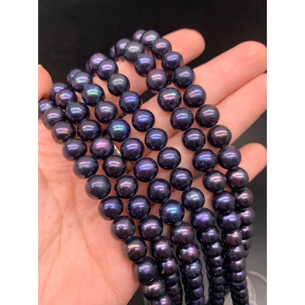 • Каменные бусины, Жемчуг, черный, шарик гладкий, 8-9 мм, длина нити 38 см