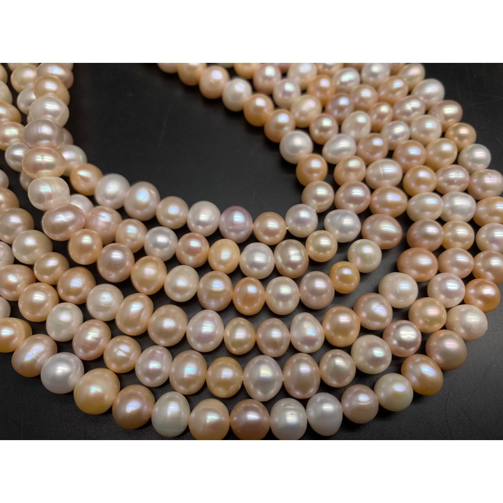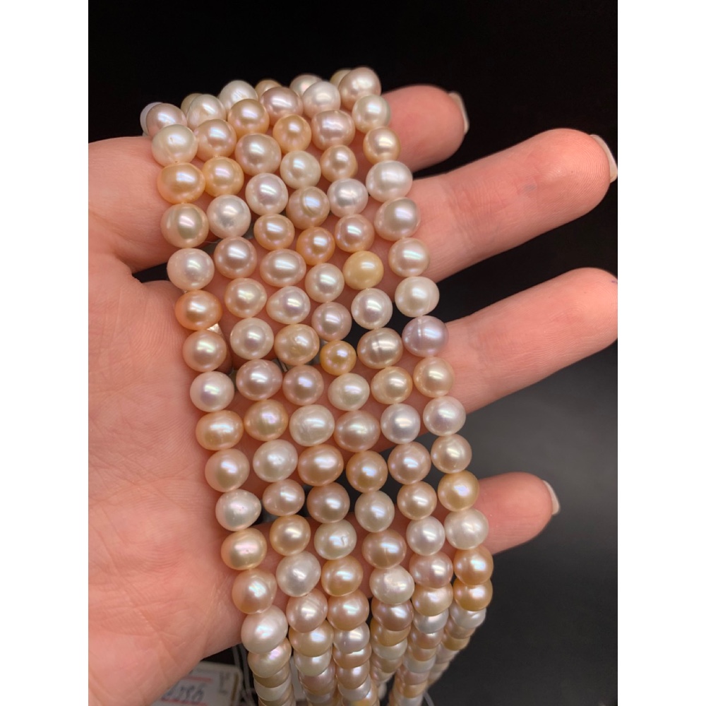 Каменные бусины, Жемчуг, персиковый, шарик гладкий, 7,5 мм, длина нити 37-38 см