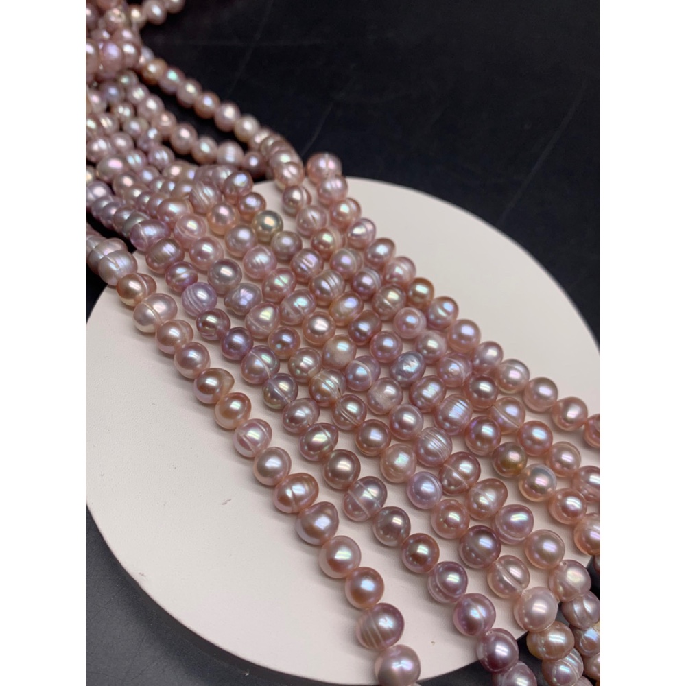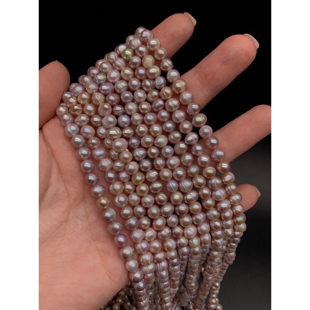 • Каменные бусины, Жемчуг, розовый, шарик, 6-7 мм, длина нити 35 см