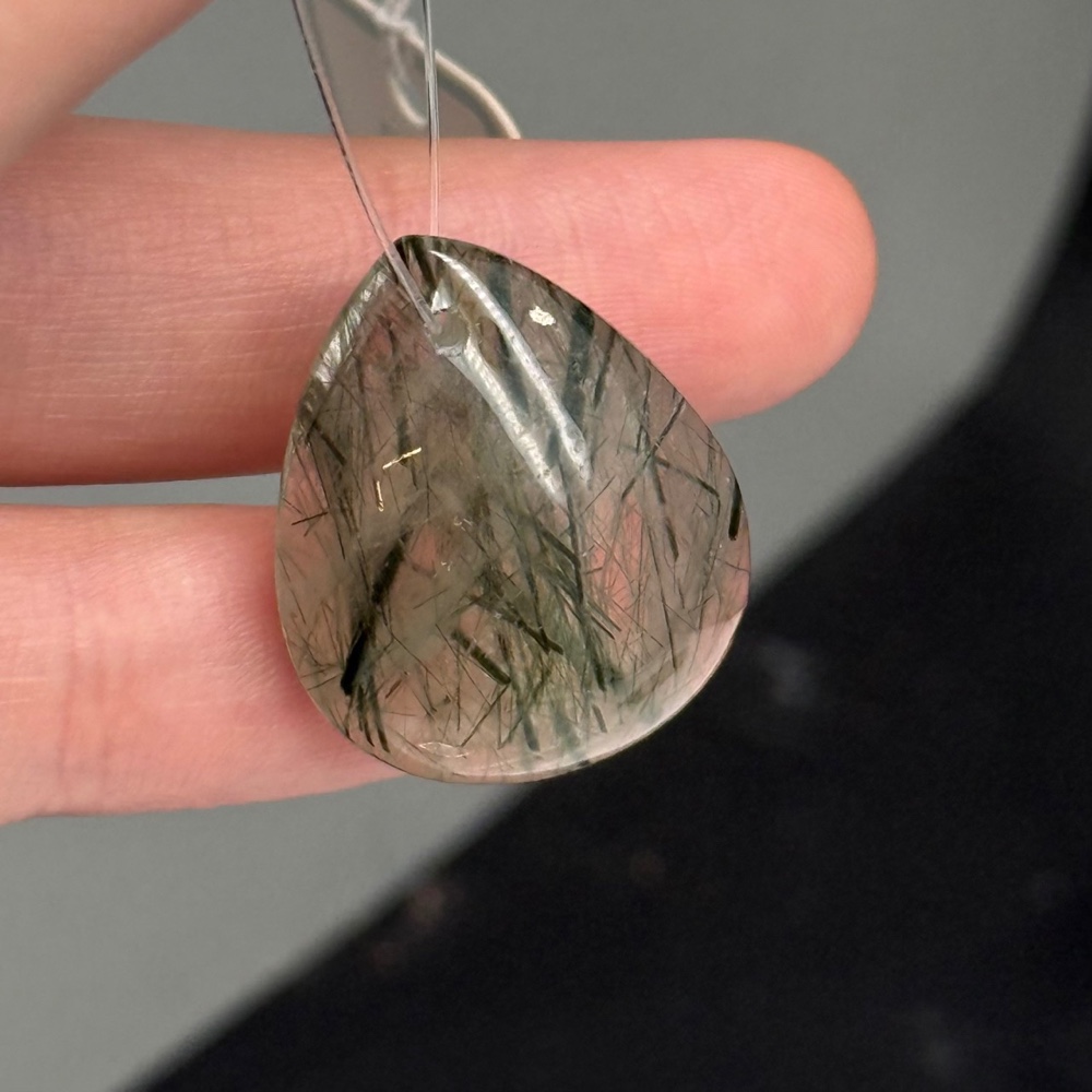 • Подвеска №1, Рутиловый кварц, зеленый, капля, размер 25х21 мм, цена за 1 шт.