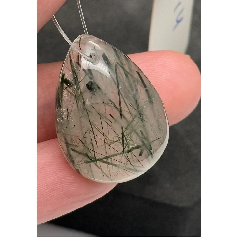 • Подвеска №3, Рутиловый кварц, зеленый, капля, размер 26х19 мм, цена за 1 шт.