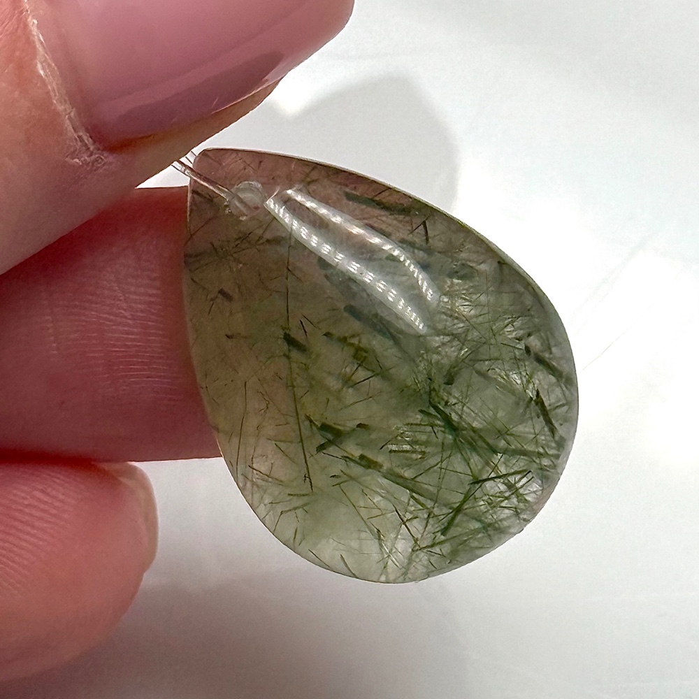 • Подвеска №4, Рутиловый кварц, зеленый, капля, размер 25х18 мм, цена за 1 шт.