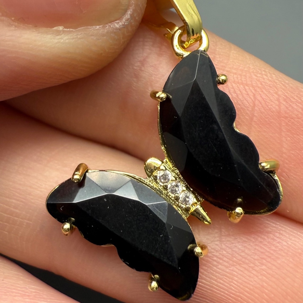Подвеска, Агат черный, оникс, Бабочка, в оправе, крепление-цвет золото, размер 20х15х4 мм, цена за 1 шт.