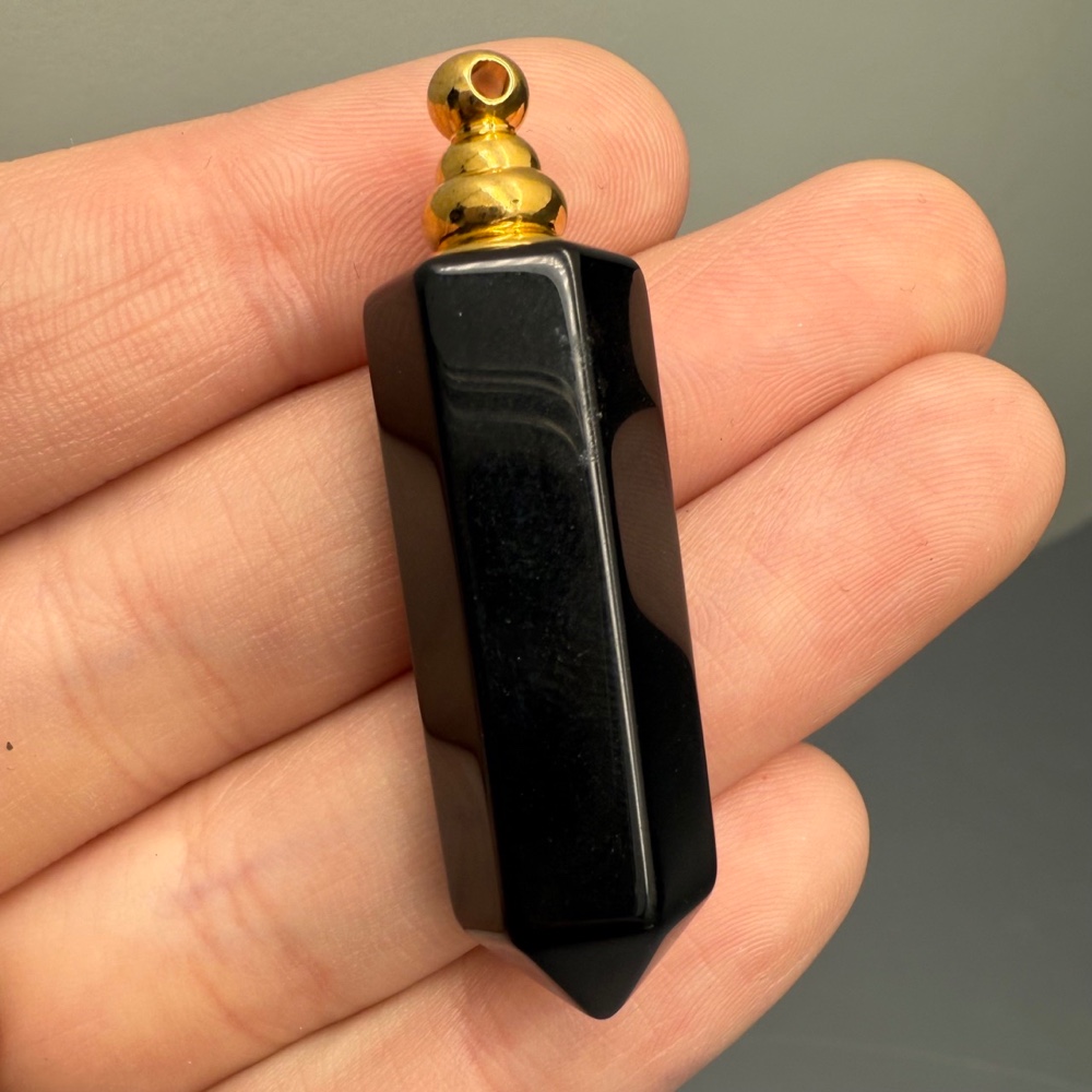 • Подвеска, Агат черный, оникс, кулон-флакон для духов и масел, маятник, размер 36х11 мм, крепление - цвет золото, цена за 1 шт.