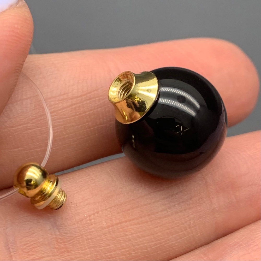 Подвеска, Агат черный, оникс, кулон-флакон для духов и масел, шар гладкий 16 мм, крепление - цвет золото, цена за 1 шт.