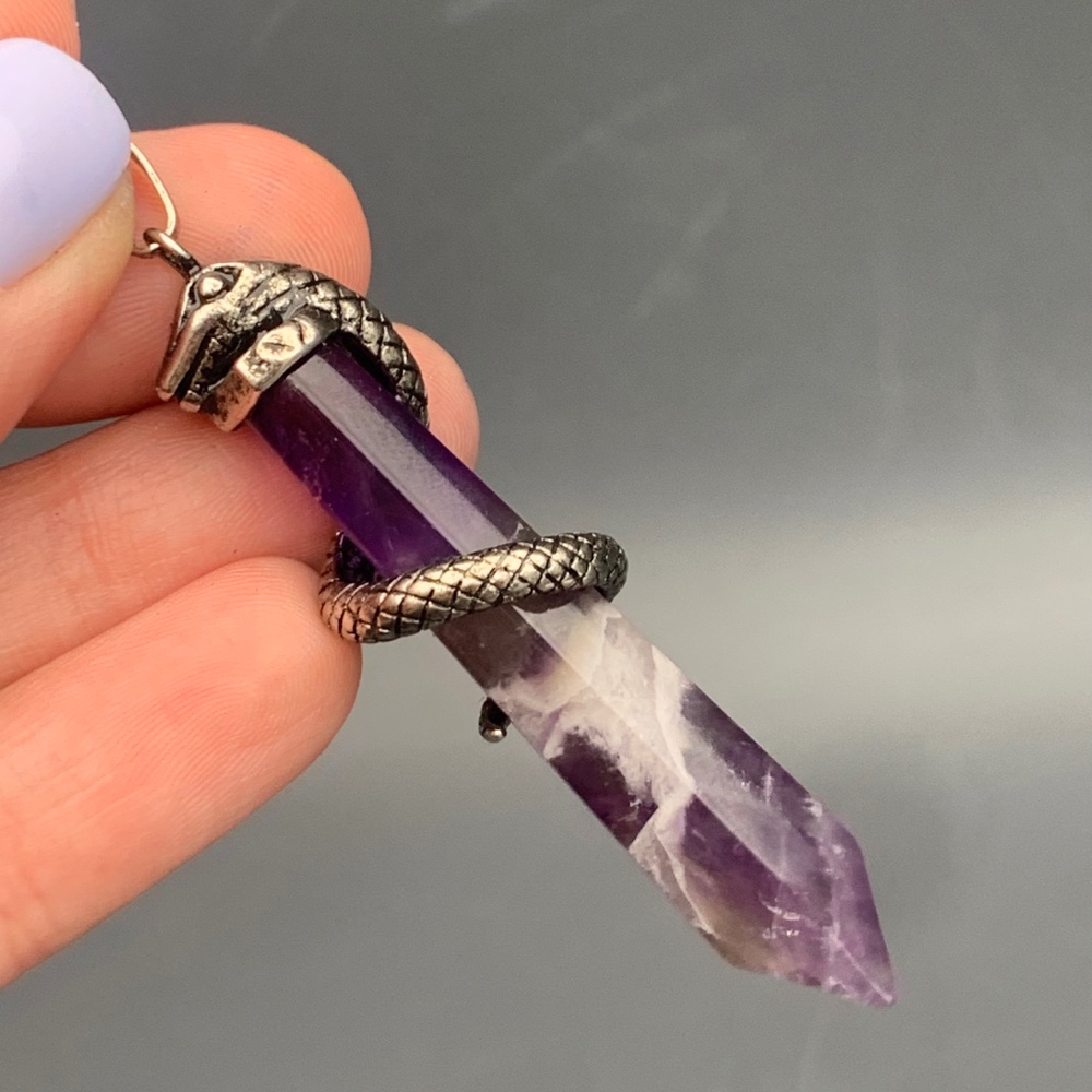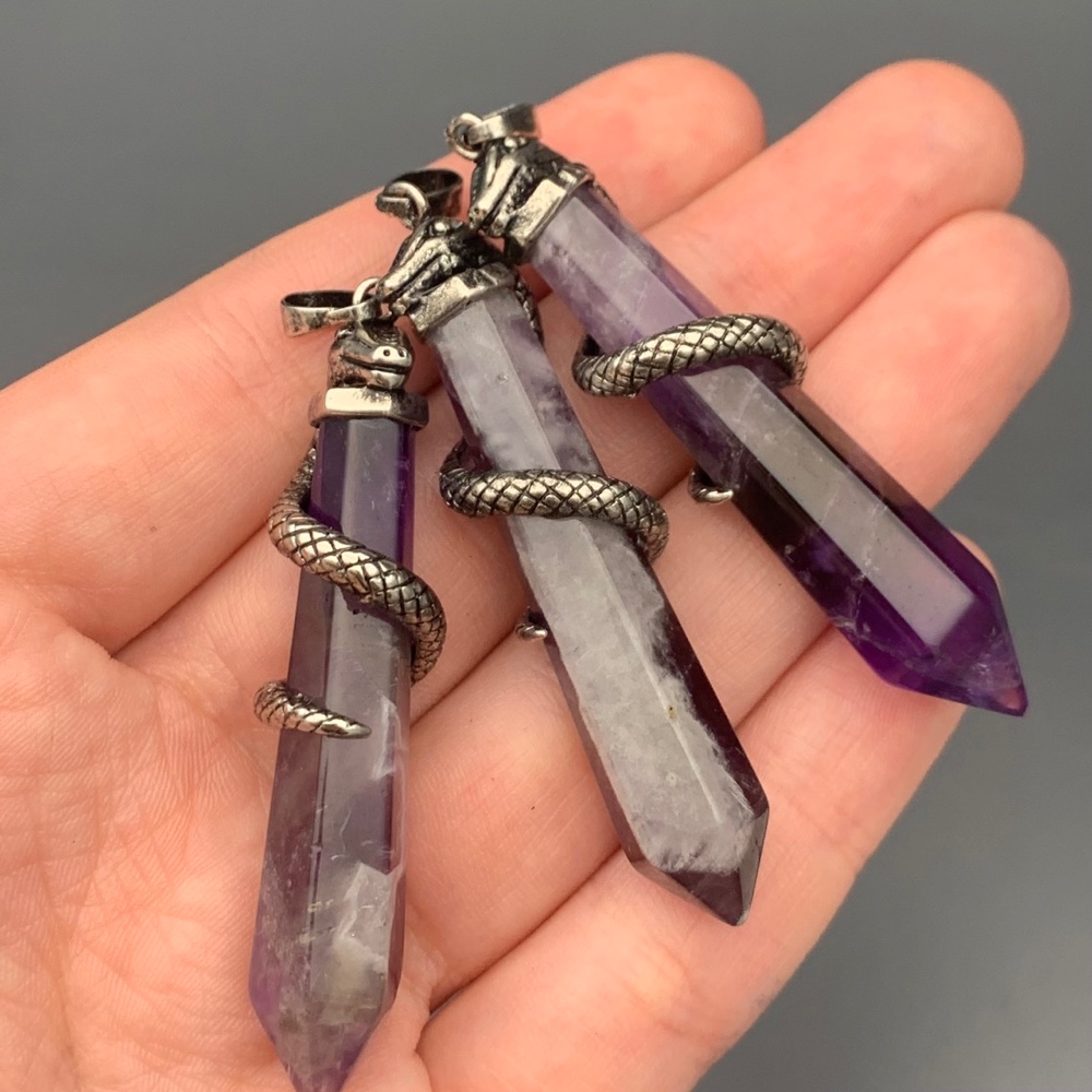 • Подвеска, Аметист, маятник, кристалл, змея, размер 43х8 мм