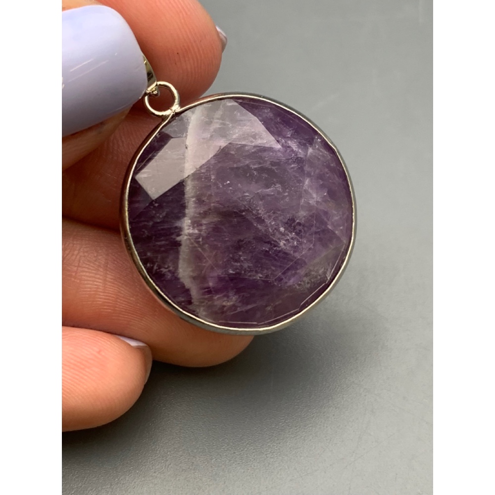 Теги: Подвеска, Аметист, в оправе, круглая, размер 26х7 мм, цена за 1 шт., 19917, Кулоны