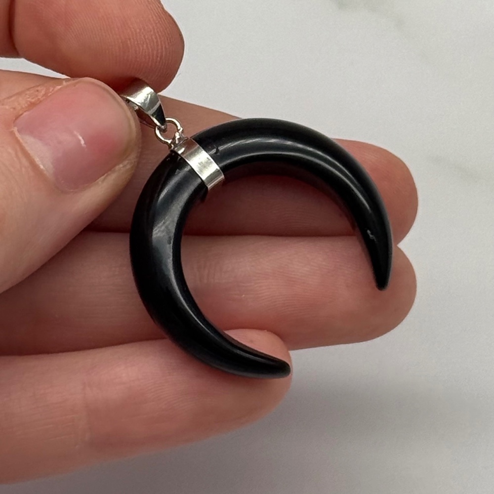 Теги: Подвеска, Лунница, Агат черный, т.н. Оникс, фурнитура-цвет серебро, размер 33 мм, цена за 1 шт., 21056, Подвески, Кулоны