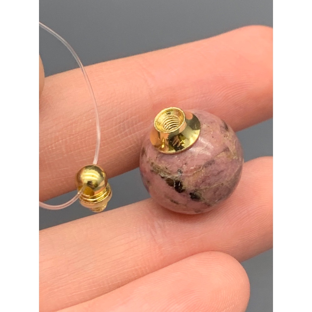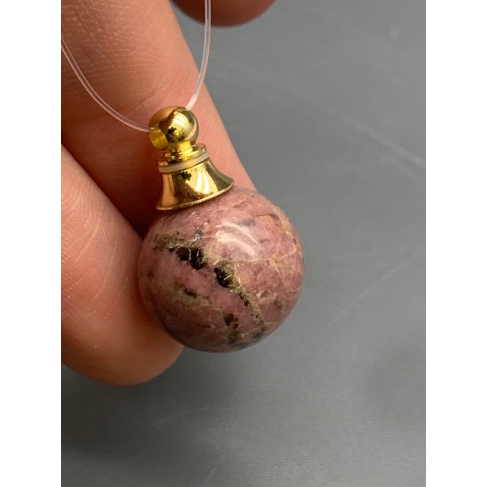 Подвеска, Родонит, кулон-флакон для духов и масел, шар гладкий 16 мм, крепление - цвет золото, цена за 1 шт.