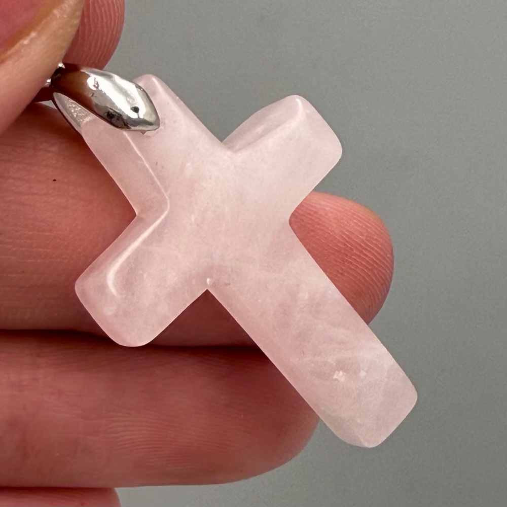Теги: Подвеска, Розовый кварц, Крест, размер 32х22 мм, цена за 1 шт., 20672, Подвески, Кулоны