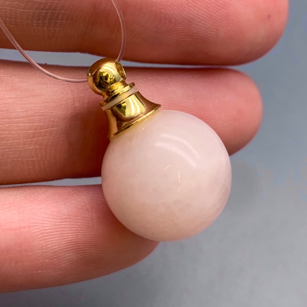 Подвеска, Розовый кварц, кулон-флакон для духов и масел, шар гладкий 16 мм, крепление - цвет золото, цена за 1 шт.