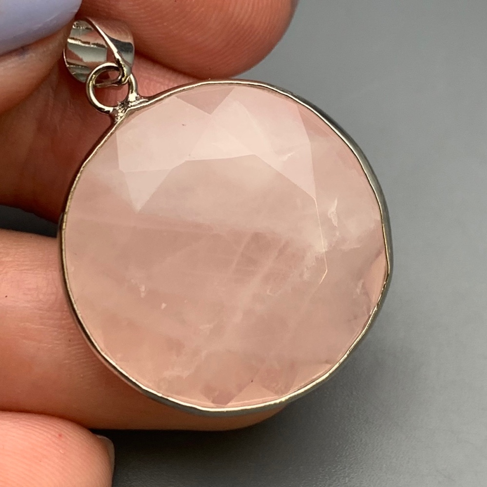 Теги: Подвеска, Розовый кварц, в оправе, круглая, размер 26х7 мм, цена за 1 шт., 19919, Кулоны