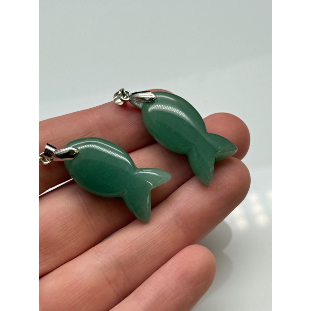 • Подвеска, Рыбка, авантюрин зеленый, цвет оправы-серебро, размер ~30х15 мм, цена за 1 шт.
