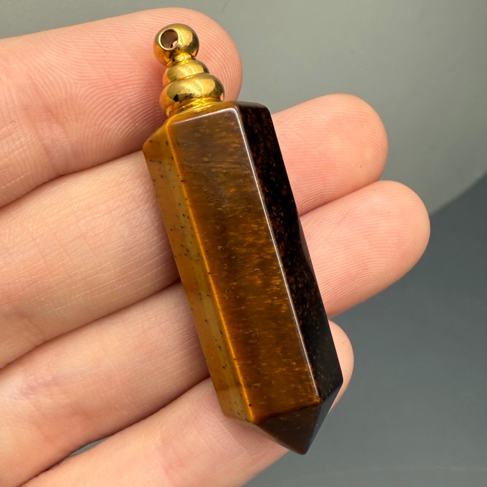 • Подвеска, Тигровый глаз, кулон-флакон для духов и масел, маятник, размер 36х11 мм, крепление - цвет золото, цена за 1 шт.