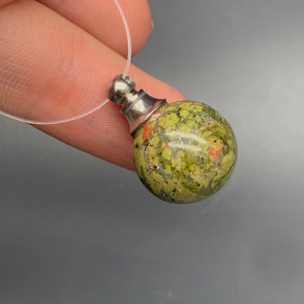 Подвеска, Унакит, кулон-флакон для духов и масел, шар гладкий 16,5 мм, крепление - цвет серебро, цена за 1 шт.
