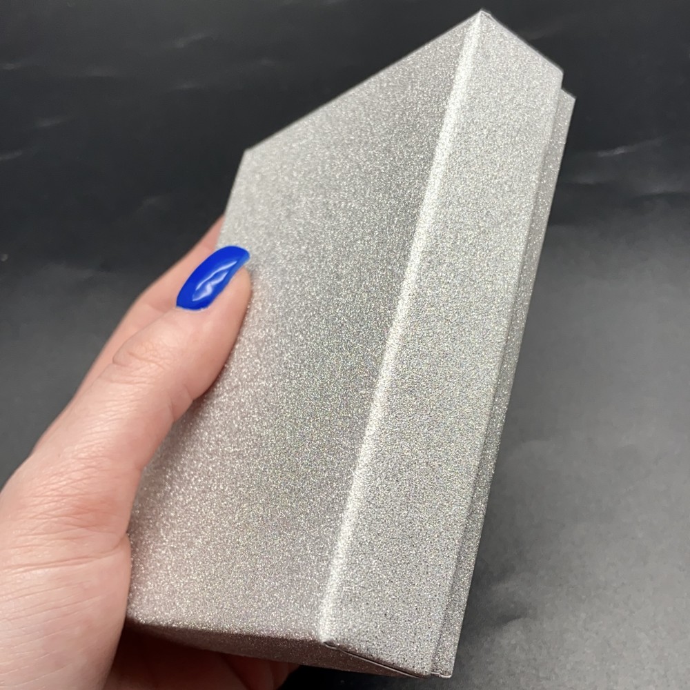 • Подарочная коробочка, с ложементом, картонная, серебристая, блестящая, размер 110х80х25 мм