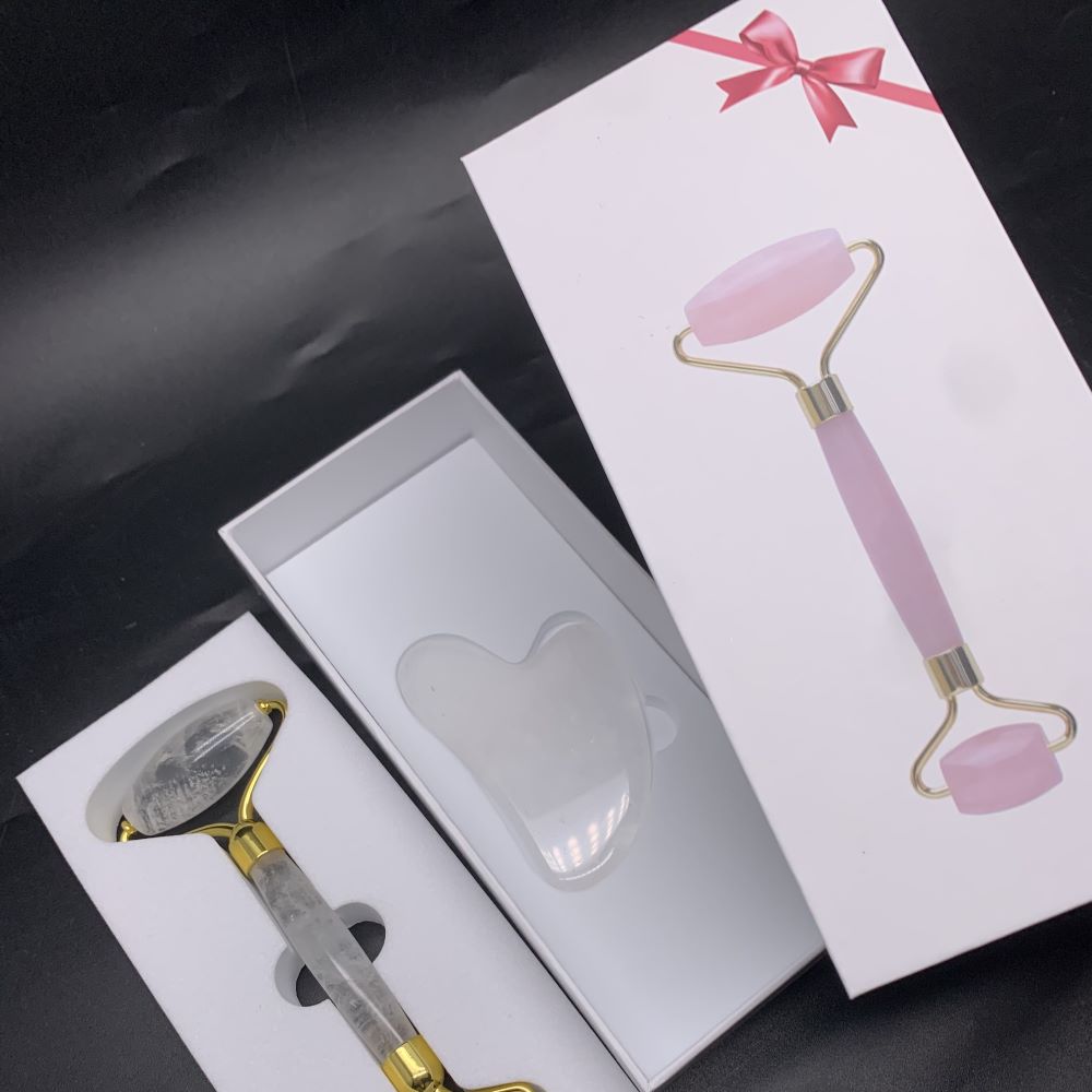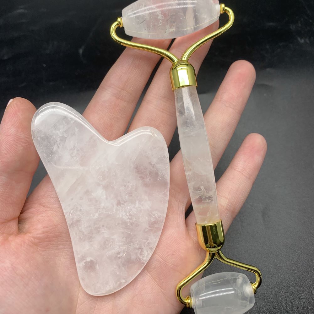• Набор из Горного хрусталя. Роллер-массажер + скребок "Сердце" для массажа Гуаша, 145 x 60 x 20 мм