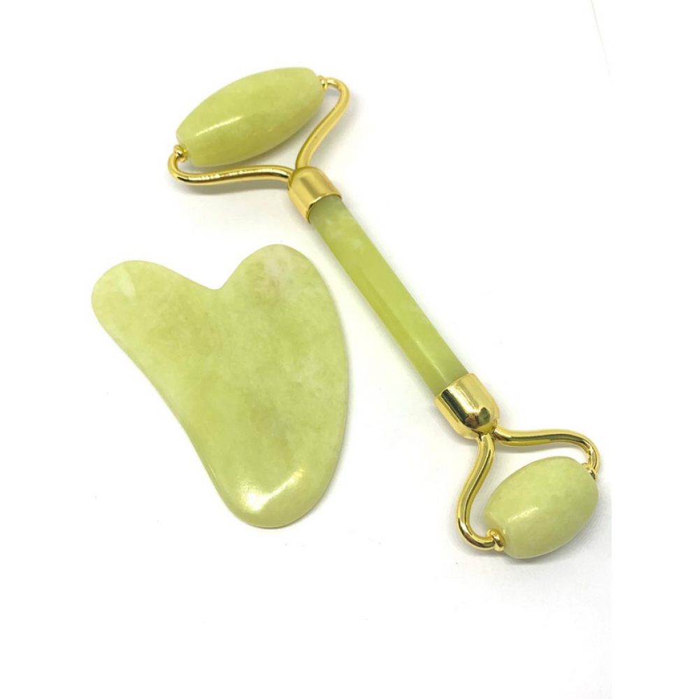 • Набор из нефрита, роллер со скребком в форме сердца, лимонного цвета, 145 x 60 x 20 мм