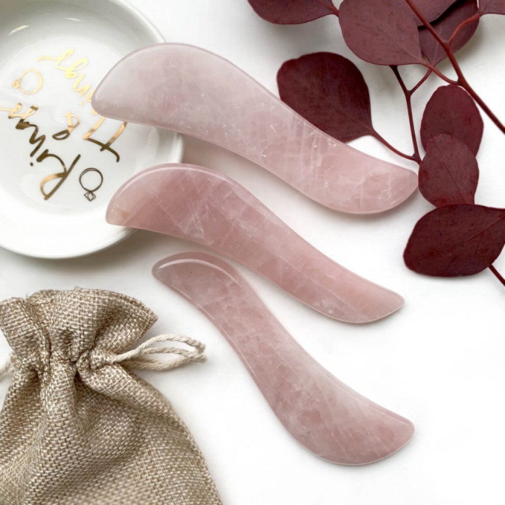 Скребок "Волна" для массажа Гуаша из розового кварца, 115 x 40 x 5 мм