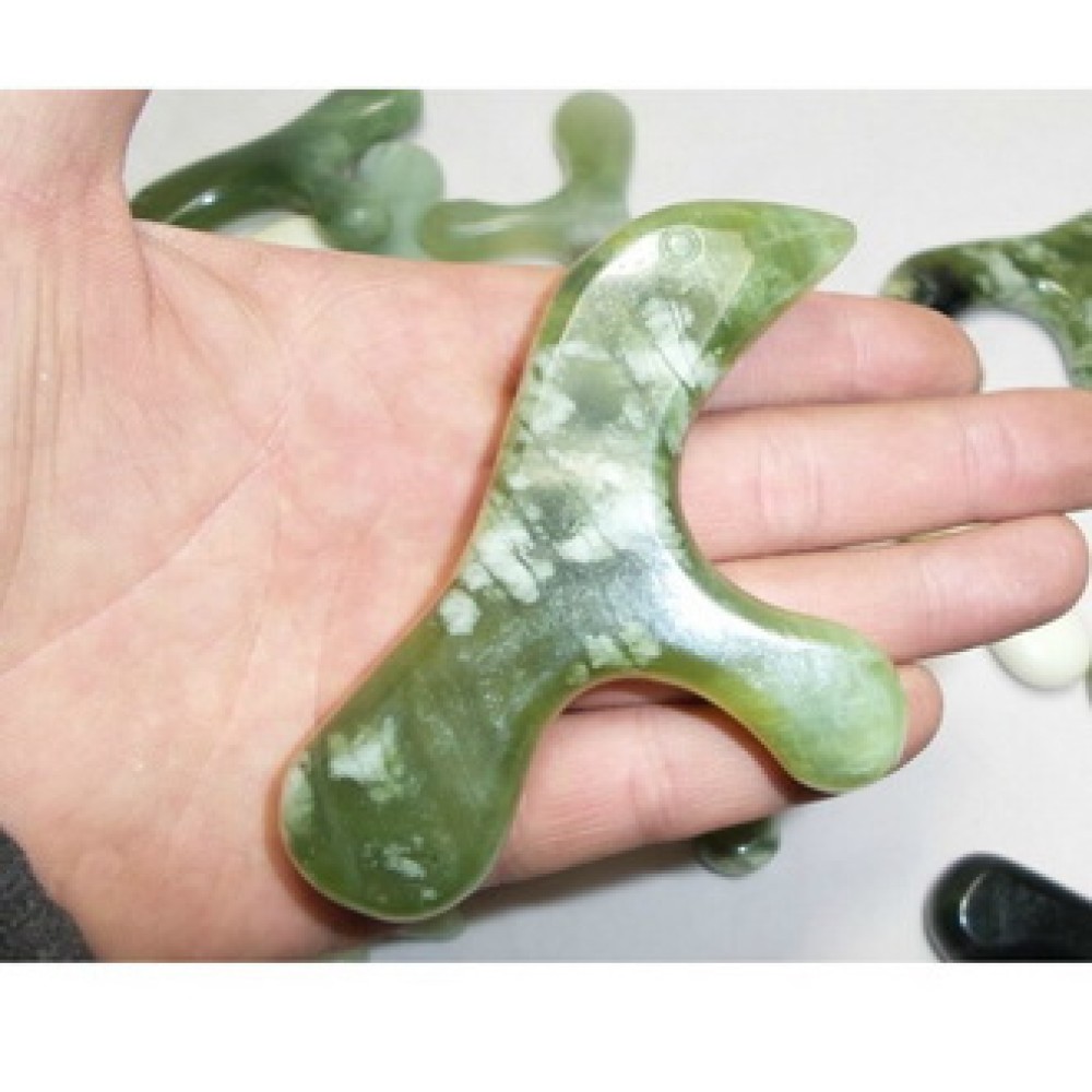 Скребок Гуаша из нефрита в форме птички, 100 x 60 x 15 мм