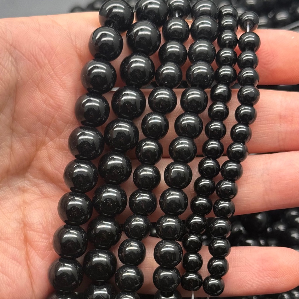 Жемчуг Майорка, искусственный, черный, шарик гладкий, 10 мм, длина нити 78 см
